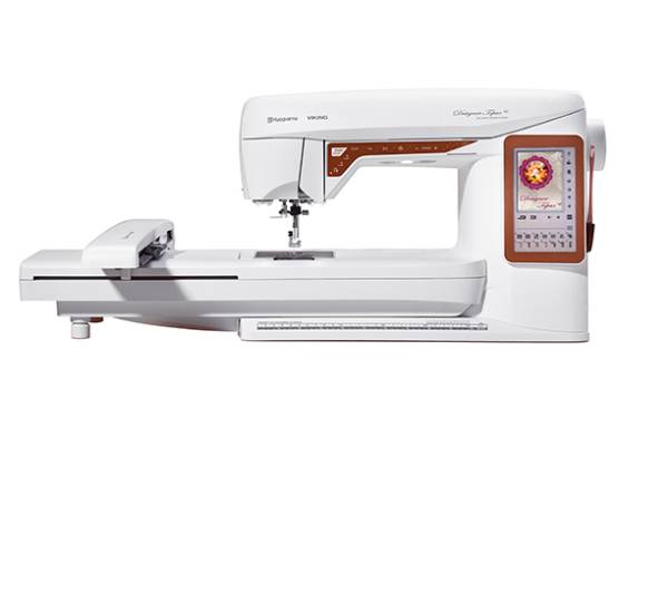 Delivers at the top of this class with a 14 11/64 x 7 7/8 design area. This model is a combination sewing, quilting, and embroidery machine. Automatic Jump Stitch Trim eliminates trimming time as you create beautiful embroideries designs. EXCLUSIVE SENSOR SYSTEM™ technology senses your fabric thickness for perfect, even feeding. 150 Embroidery Designs and 2 Embroidery Fonts in three different sizes included. Hoops: DESIGNER™ Royal Hoop, 360 x 200 DESIGNER™(14 11/64 x 7 7/8,) Splendid Square Hoop, 120 x 120 (4.23x 4.23)