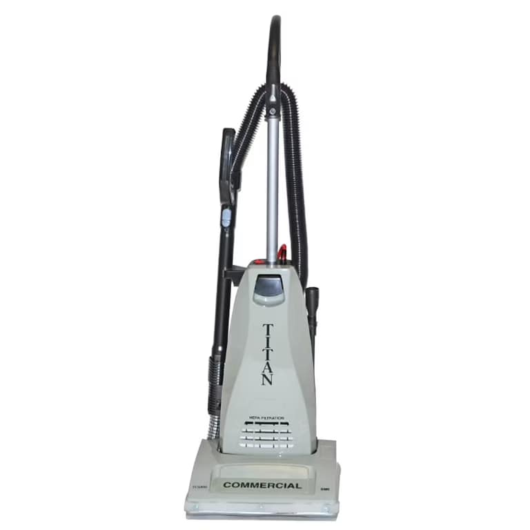 To begin with, the TITAN TC6000.2 Commercial Upright is a durable commercial upright vacuum with all-metal construction from handle to bottom plate, thus ensuring longevity in tough environments. Furthermore, it employs Clean Air Technology, directing only filtered air to the motor for extended life and efficiency. Additionally, with a 14-inch cleaning path and 40-foot cord, it covers large areas quickly without frequent outlet changes. In addition, the gray finish adds a professional look, while onboard tools make it versatile for edges, upholstery, and crevices.