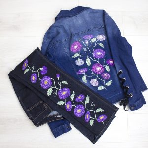 Another exciting option involves custom appliqué with embroidered outlines. Moreover, cut shapes from contrasting fabric (like leather scraps or colorful cotton), layer them onto the jeans, and secure them with satin-stitched borders or decorative motifs. In addition to adding texture and dimension, this technique lets you mix materials for a truly artistic effect. Consequently, your creations stand out as exclusive fashion pieces that tell a story only you could design.